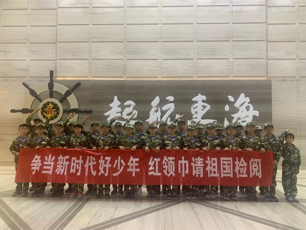 “励志 明理 尚武 塑德”!随着一声声响亮的口号声响彻训练场,东海少年军校全民国防教育日“争当新时代好队员 红领巾请祖国检阅”主题活动在该校横溪实践体验基地拉开帷幕。 9月20日上午,东海少年军校组织30余位基地学校优秀队员代表和驻甬部队现役官兵及文职子女代表走进横溪实践体验基地。进入基地队员们即刻换上了迷彩服。经过带训教官认真严格的军姿训练,队员们快速完成了从一名“红领巾”到“小海军”的角色转变。军姿训练中,队员们不怕苦、不怕累,主动把动作做到位,把眼神练到位。训练间隙,军校还特别为队员们安排了手枪模拟打靶和军事无人机模拟航母着舰等趣味军事游戏活动,将军工科技意识植入游戏竞技之中,寓教于乐,得到了队员们的喜爱,参与热情高涨,训练的疲惫顿时一扫而空。 下午,队员们怀着无比激动的心情参观了东海舰队军史馆,学习党史军史,聆听人民海军官兵的奋斗故事。在一件件先进武器模型前,队员们流连忘返;在海军英模墙前,队员们认真聆听记录。来自东海少年军校基地学校宁波市行知实验小学的谢昊辰说:“军姿训练时差点坚持不住,但是听着教官给我们讲九三阅兵训练场上解放军大哥哥大姐姐坚持训练的事迹,我就告诉自己一定要坚持住。” 当天晚上,军校10余名师生代表受邀参加“星耀四明 海定波宁”宁波市全民国防教育日主题活动。军校学员代表身着迷彩服,佩戴红领巾,军容严整,瞬间成为活动的焦点。活动结束后,师生代表还接受了甬派记者的采访。 据悉,作为宁波少先队国字号活动品牌,下步东海少年军校将继续结合国家公祭日、国庆节等重要节庆纪念日,推出更多形式多样的青少年国防教育实践活动,加强新时代少年儿童爱国主义教育和国防教育。